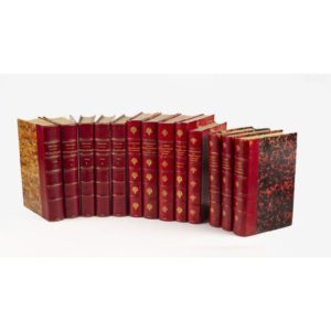 TALLEYRAND (Prince de). Mémoires. 1754-1834. Publiés avec une préface et des notes par le duc de Broglie. Paris, Calmann-Lévy, 1891-1892. 5 vol. in-8, demi-maroquin rouge, tête dorée (Rel. ép.). Édition originale, illustrée de 5 portraits et 2 fac-similés. Joints : - BERTRAND (Pierre). Lettres inédites de Talleyrand à Napoléon 1800-1809. Paris, Perrin et Cie, 1889. In-8, demi-maroquin rouge (Champs-Stroobants). Édition originale. Envoi à M. Henry Fouquier. - Correspondance inédite du Prince de Talleyrand et du roi Louis XVIII pendant le congrès de Vienne. Troisième édition. Paris, Plon, 1884. - La Mission de Talleyrand en 1792. Paris, Plon, 1889. Édition originale. - Ambassade de Talleyrand à Londres 1830-1834. Première partie. Paris, Plon, 1891. Édition originale. - Le Ministère de Talleyrand sous le Directoire. Paris, Plon, 1891. Édition originale. Éditions établies par G. Pallain. Ens. 10 vol. in-8, demi-maroquin rouge. Joint : TAINE. Les Origines de la France. Paris, Hachette et Cie, [1892-1894]. 3 vol. demi-maroquin à long grain rouge (Rel. ép.). Nouvelles éditions, ex. composite. Rousseurs. Rel. frottée.