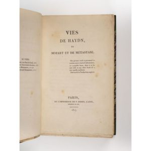 STENDHAL. Vies de Haydn, Mozart et Métastase. Paris, P. Didot l'aîné, 1817. In-8, demi-veau …