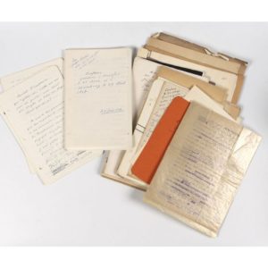 JOUHANDEAU (Marcel). 1913, Journal. Carnet manuscrit in-8, de 49 feuillets. Il ouvre sur cette note autographe : "Ce cahier est le seul manuscrit qui ait échappé à l'hécatombe en février 1914". En février 1914, Jouhandeau avait brûlé ses manuscrits avant de tenter de se suicider. Il porte cet envoi a. s. de Jouhandeau : "Pour Jacques Louvière, en témoignage de vive reconnaissance et d'amitié, Rueil le 2 juillet 1966". Écriture variable, corrections, annotations, nombreux passages barrés "utilisés dans Monsieur Godeau, d'après ce que m'a dit aujourd'hui M. J." [note sans doute de Jacques Louvière]. Premier feuillet, découpé en partie basse. Joints : - vers 1930, Binche-Ana. Épreuves corrigées, collées sur 5 ff. in-folio pliés. Ce récit paru chez Gallimard, en 1933. - 1967, Conférence de Francfort et Hambourg, avril 1967. Environ 40 ff. manuscrits, sous env., avec envoi a. de Jouhandeau à l'éditeur Jacques Louvière. Inédit. - Jointe une chemise de manuscrits et papiers divers, dont 5 ff. d'un manuscrit littéraire fragmentaire inédit (Lin Trumel). JOUHANDEAU (Marcel). Important ensemble manuscrit autographe et tapuscrit de récits autobiographiques. Volumes sous emboitage, carnets intimes, feuillets ordonnés sous chemises annotées, journaux, brouillons, épreuves, corrections… Marcel Jouhandeau (1888-1979) fut un professeur adulé au collège de Passy à partir de 1912. Partagé entre un catholicisme fervent et ses attirances homosexuelles, entre le salut et la damnation, il composa une œuvre variée de romans, contes, chroniques, essais, et récits autobiographiques.