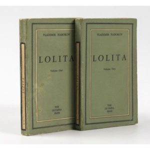 Édition originale, en anglais, publiée par Maurice Kahane, dit Maurice Girodias (1919-1990), fondateur des éditions The Olympia Press. Audacieuse, c'est l'une des premières publications de cette maison d'édition. Elle fut interdite de vente en France pendant deux ans, et c'est en 1959 que Éric Kahane, le frère de l'éditeur Maurice Kahane, donnera la première traduction en français de Lolita, pour Gallimard. Cette même année, l'ouvrage parut au Royaume-Uni, chez Weidenfeld & Nicolson. Exemplaire de premier tirage, d'août 1955, avec l'indication "Francs : 900" sur les quatrièmes de couverture. Volume I, trace d'une étiquette collée au second plat sur le prix. Petites restaurations aux couvertures. Étiquette de la librairie anglaise Mistral à Paris. « Petite tache marginale aux derniers feuillets du tome II »