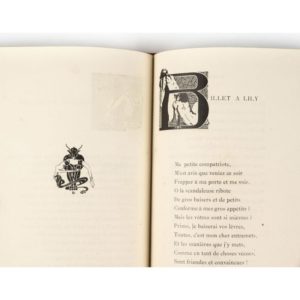 VERLAINE (Paul). Œuvres libres. Sous le nom du Licencié Pablo de Herlagnez à Ségovie-1868. (Paris, vers 1930). In-8, demi-maroquin rouge à coins, dos lisse, couv. et dos cons. (Rel. moderne). Réunion des recueils de poèmes érotiques Amies, Femmes et Hombres, illustrée de gravures sur bois non signées à caractère libre : 31 lettrines (une en tête de chaque poème), et culs-de-lampe. Édition non mise dans le commerce, tirée "à quatre-cents exemplaires pour les souscripteurs".