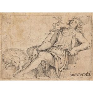 ƒ JEAN BOUCHER de Bourges (1568-1633) Saint Jean-Baptiste dormant Eau-forte anciennement montée …