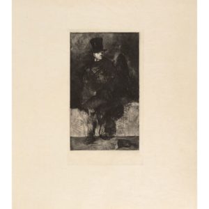 Edouard MANET (1832-1883) Le buveur d'absinthe, 1861-1862 Eau-forte et aquatinte sur papier simili Japon Epreuve de l'état définitif, tirage postérieur Infimes taches dans les marges Etching and aquatint on imitation Japan paper Proof of the final state, subsequent print Tiny stains in the margins Sujet : 25 x 14,5 CM ; Feuillet : 45,3 x 39,8 CM - Subject: 9 7/8 x 5 3/4 IN ; Sheet: 17 7/8 x 15 5/8 IN Bibliographie : Guérin 9, J. Wilson Ive état