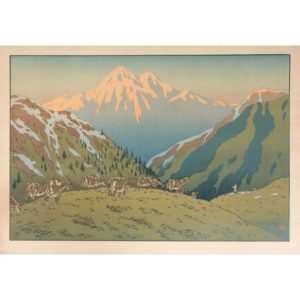 HENRI RIVIERE (1864-1951) LA MONTAGNE, 1897 Planche 4 de la série "Les Aspects de la Nature" Lithographie en couleurs timbrée Légères traces de plis Stamped color lithograph Slight traces of creases 62,3 x 89,2 CM - 24 1/2 x 35 1/8 IN Bibliographie : Toudouze p. 163, V. Sueur-Herme