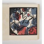 WASSILY KANDINSKY (1866-1944) DU SPIRITUEL DANS L'ART et dans la Peinture en particulier Galerie René Drouin, 17 Place Vendôme Paris 1949. Dans la chemise et étui de l'éditeur. Tirage à 300 exemplaires sur papier vélin Lana, celui-ci numéroté 58 et orné de 10 vignettes gravées sur bois, de 8 planches en héliogravures et d'un bois gravé "Drei Reiter in rot, blau, und schwarz". Imprimé par l'imprimerie Union à partir du bois original que possédait Nina Kandinsky. Très légers plis. Bon état général, chemise légèrement tachées, étui un peu usagé In the publisher's folder and case. Edition of 300 copies on Lana vellum paper, this one numbered 58 and decorated with 10 vignettes engraved on wood, 8 plates in heliogravures and a wood engraved “Drei Reiter in rot, blau, und schwarz”. Printed by the Union Printing Company from the original wood that Nina Kandinsky owned. Very slight creases. Good general condition, slightly stained shirt, slightly used case Bibliographie : Roethel p. 107, 108