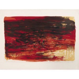 ZAO WOU-KI (1921-2013) Sans titre Lithographie en couleurs sur vélin de Rives Signée, datée 65 et annotée "épreuve d'artiste". En dehors de l'édition à 95 exemplaires Quelques plis de manipulation, léger report du sujet au verso. Color lithograph on Rives vellum Signed, dated 65 and annotated "artist's proof". Apart from the edition of 95 copies A few handling creases, slight transfer of the subject to the back. Sujet : 37,5 x 58 CM ; Feuillet : 50,5 x 65 CM - Image: 14 3/4 x 22 7/8 IN ; Sheet: 19 7/8 x 25 5/8 IN Bibliographie : Agerup 157