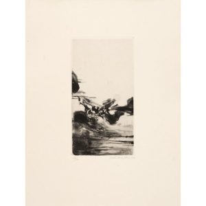 ZAO WOU-KI (1921-2013) Planche pour le livre " Une migration " de R. Laporte, 1974 Eau-forte et aquatinte sur vélin d'Arches Signée, datée 73 et numérotée 24/50 Etching and aquatint on Arches vellum Signed, dated 73 and numbered 24/50 Sujet : 18,5 x 10 CM ; Feuillet : 33 x 25 CM - Image: 7 1/4 x 4 IN ; Sheet: 13 x 9 7/8 IN Bibliographie : Agerup 250