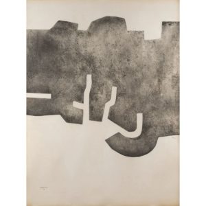 EDUARDO CHILLIDA (1924-2002) NITAZ, 1975 Eau-forte et aquatinte sur vélin d'Arches Signée et numérotée 9/50 Légère insolation sur les bords, quelques plis ondulés, petite déchirure dans le bord droit Etching and aquatint on Arches vellum Signed and numbered 9/50 Slight exposure to the edges, some wavy folds, small tear in the right edge 159,5 x 120,5 CM - 62 3/4 x 47 1/2 IN Provenance : Acquis auprès de la galerie Lelong Bibliographie : Van der Koelen 75003