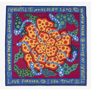 YAYOI KUSAMA (née en 1929) TSUMARI IN BLOOM, 2018 Impression sur tissu Edition limitée non numérotée Print on fabric, limited edition, not numbered 104 X 104 CM - 41 x 41 IN Provenance : Echigo-Tsumari Art Triennial 2018