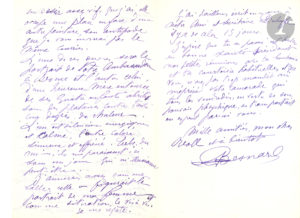 Albert BESNARD (1849-1934). L.A.S., Palazzo Massimo à Rome 14 mars 1906, à Alfred Roll (président de la Société Nationale des Beaux-Arts) ; 3 pages in-8 à l'encre violette. Il est retenu à Rome par l'achèvement du portrait de l'ambassadeur...