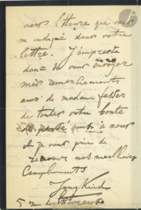 Johann Barthold JONGKIND (1819-1891). L.A.S., Paris 14 avril 1876, à M. Vial ; 2 pages et demie in-8 (deuil). Il remercie pour l'envoi de médicaments et d'une " bouteille de la bonne Cognac ", mais il manque " les gravures des épreuves de votre...