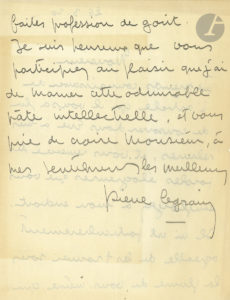 Pierre LEGRAIN (1888-1929). L.A.S., 26 mars 1920, [à Michel Dufet] ; 2 pages in-4. Il remercie d'un article élogieux consacré " dans Ève à mes reliures [...] Il m'est particulièrement agréable de les trouver sous la plume de vous-même qui...