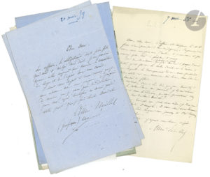 Aimé MILLET (1819-1891). 50 L.A.S., un télégramme et 10 cartes de visite a.s., 1859-1890, à Henri Dumesnil ; 75 pages in-8 ou in-12, quelques-unes à son chiffre ou adresse, 2 enveloppes, quelques adresses. Belle correspondance du sculpteur à...