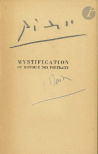 Pablo PICASSO (1881-1973). Signature autographe sur Denis Diderot, Mystification ou histoire des portraits (Les Éditeurs Français Réunis, 1954) ; in-8 ; broché. Préface de Pierre Daix. Portrait de Diderot par Picasso en frontispice. Couverture...