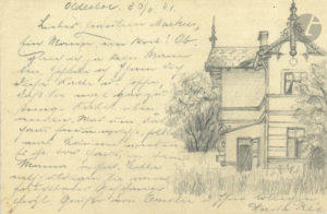 plomb. Lettre amicale, illustrée du dessin de sa maison.