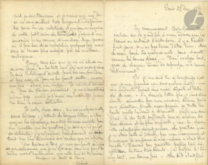 Théophile-Alexandre STEINLEN (1859-1923). L.A.S. " Alex " et L.A. (la fin manque), Mulhouse lundi [1881] et Paris 29 décembre 1881, à sa sœur Henriette Steinlen ; 8 pages in-8. Intéressantes lettres de jeunesse, montrant les raisons qui ont...