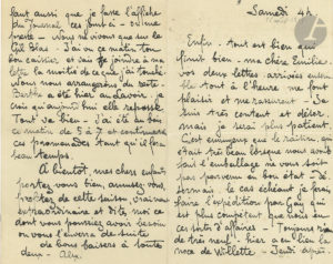 Théophile-Alexandre STEINLEN. 2 L.A.S. " Alex ", [Paris, août-septembre 1899], à sa femme Émilie à Saint-Aubin-sur-mer (Calvados) ; 4 pages in-8 chaque, une enveloppe. Samedi [26 août]. Il regrette que le raisin envoyé lui soit arrivé en...