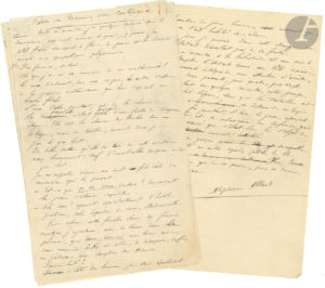 Alphonse ALLAIS. 2 manuscrits autographes, le 1er signé, [1887-1888] ; 4 et 2 pages in-8. Deux contes pour Le Chat Noir. Pour se donner une contenance. Conte publié dans Le Chat Noir le 10 décembre 1887 (repris dans Le Journal sous le titre Un...