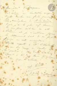 Alphonse ALLAIS. L.A.S., [1891], à Pierre Valdagne ; 1 page in-8 (rousseurs). Il demande de lui faire parvenir " 20 exemplaires de À se tordre. [...] Quant à toi, je baise la plupart de ton corps d'albâtre "... On joint 3 documents : -une affiche...
