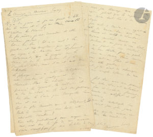mars 1892]. " Il y a des jours où je me prends la tête dans les mains et où je me demande Où s'arrêtera la Science ? Des fois, même, je me demande si elle s'arrêtera jamais "... Il évoque le téléphone et le théâtrophone. La Chronique de Monsieur Sarcey, [Le Chat Noir, 27 février 1892] ." Pour s'instruire un peu, voyez-vous, il n'est encore rien de tel que de sortir de chez soi. On va à droite, on va à gauche, on prête l'oreille "... Ainsi, dans un établissement de bains, il écoute avec intérêt des dames parler théâtre... Après la chronique, Allais ajoute : " Nous prévenons les lecteurs et les fournisseurs du Chat Noir que M. Ernest Renan n'appartient plus ni à la rédaction ni à l'administration du journal ". Chronique, [Le Chat Noir, 11 mars 1893]. " Ohé, ohé, c'est la jeunesse ! comme on disait dans je ne me rappelle plus quel vaudeville du Palais-Royal où ce pauvre Gil Pérès était si drôle ". Il est allé, masqué et déguisé dans des étoffes de Liberty, au bal du Courrier Français, avec de jolies filles... On joint la copie d'une lettre à Léon Deschamps, 16 novembre 1891, au sujet de Sarcey ; et un manuscrit autographe signé " Dumaphis ", Maximes, Deuxième dixseptain (2 p. in-8, petites fentes marg. ; publié dans Le Chat Noir du 25 janvier 1890), amusantes maximes de XVIII à XXVII : " Le phare illumine les mers. Le fard enlumine les filles ".