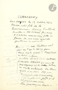 CURNONSKY. Manuscrit autographe, Curnonsky, [vers 1950 ?] ; 3 pages et quart in-8. Notice autobiographique. " Curnonsky Né à Angers le 12 octobre 1872. Arrière petit fils de la Benheureuse Jeanne Sailland " fusillée en 1793. " Maurice Edmond...
