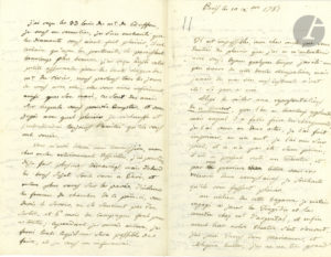 Jean-Pierre Claris de FLORIAN (1755-1794). 2 L.A., 1781-1785, à son oncle le marquis de Florian ; 4 et 3 pages in-8 (petites taches de cire sur la 2e). Belles lettres littéraires sur le théâtre à son cher oncle. Paris 10 décembre 1781. Jolie...