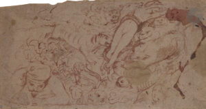 l'œuvre graphique de Gautier (n° 46, avec une pochade intitulée Cuisine du samedi) : " une fantaisie burlesque sur la Tentation de saint Antoine, de M. Gustave Flaubert. L'écrivain est occupé à composer, et autour de lui voltigent des apparitions de tigre, de lions, d'ours, au milieu desquels s'étire une femme nue, ceinturée d'un serpent, etc. " Ancienne collection Émile Bergerat. Émile Bergerat, Théophile Gautier peintre ; étude suivie du Catalogue de son œuvre peint, dessiné et gravé (Paris, J. Baur, 1877, p. 29). Exposition Dessins d'écrivains français du XIXe siècle (Paris, Maison de Balzac, 1983-1984, n° 56).