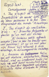 Pierre LOUŸS. Note autographe ; 1 page in-8 à l'encre violette. Analyse de son caractère. " Esprit lent. Conséquences : 1° Doute de moi à 16,17 ans. Timidité extrême. [...] Pas d'esprit de répartie. Impossibilité de causer avec plus de deux...