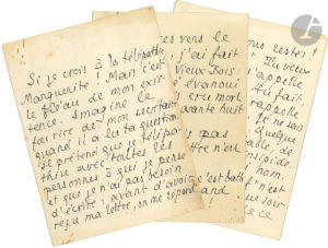 Pierre LOUŸS. L.A., [1918], à sa cousine Marguerite [Maldan-Dubois] ; 20 pages in-8. Très longue et intéressante lettre sur la télépathie, et sur la vente de sa bibliothèque. La télépathie est le " fléau de mon existence " ; il fait de la...