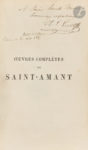 Charles-Augustin SAINTE-BEUVE. Notes autographes dans SAINT-AMANT, Œuvres complètes... Nouvelle édition... Précédée d'une Notice et accompagnée de notes par M.Ch.-L. Livet (Paris, P. Jannet, 1855), 2 forts volumes in-12, percaline rouge...