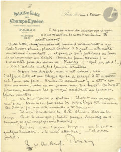 Jean de TINAN. 2 L.A.S., 1898 et s.d., [à Henri Albert ?] ; 1 page in-4 à en-tête Palais de Glace des Champs-Élysées, et 1 page et quart in-8. Février 1898. Il répond à sa lettre : " je suis justement en train de m'emmerder au Palais (heure...