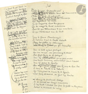 d'importantes variantes avec le texte définitif, et est surchargé de ratures et corrections. " Dites les gens, les pauvres gens Faites flamber foyers & cours, dans les hameaux "...