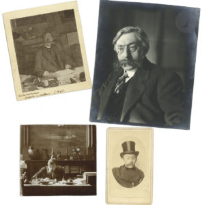 [Émile VERHAEREN]. 60 photographies originales ou retirages anciens ; formats divers. Bel ensemble iconographique, provenant de la collection de Théo et Maria van Rysselberghe. Portraits de Verhaeren, depuis l'enfance jusqu'à la vieillesse ; une...