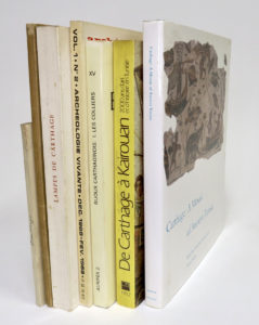 Tunisien sous Protectorat Français. Ernest Leroux éditeur à Paris, 1909. Avec envoi manuscrit de l’auteur à J. Zeiller. . Carthage autrefois. Carthage aujourd’hui, par deux pères blancs. Tunis, Imprimerie Générale, mention « cinquième édition revue et augmentée », Tunis, 1923. . LAMPES DE CARTHAGE, par Jean Deneauve. Editions du Centre National de la Recherche Scientifique, Paris, 1969. . CARTHAGE sa Naissance, sa Grandeur. Les Collections Puniques des Musées du Bardo, de Carthage et d’Utique. Publication d’art et d’archéologie, “Archéologie Vivante”, Paris, Vol. I, n°2, édition française, 1969. . BIJOUX CARTHAGINOIS Les Colliers, par B. Quillard Institut Supérieur d’Archéologie et d’Histoire de l’Art, Louvain-La-Neuve, Belgique, 1979. Avec envoi manuscrit de l’auteur à Jean Roudillon. . De Carthage à Kairouan, 2000 ans d’art et d’histoire en Tunisie. Catalogue de l’exposition du musée du Petit Palais de la ville de Paris, 1983. . Carthage: A Mosaic of Ancient Tunisia, by Aïcha Ben Abed ben Khader and David Soren. The American Museum of Natural History with W.W. Norton, New-York. London, 1987. Archives documentaires de Jean ROUDILLON (1923-2020)