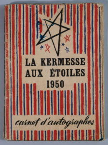 AUTOGRAPHE (Album). La kermesse aux Etoiles 1950 (carnet d'autographes). (s.l., [circa 1950/1980]). 105 pp. in-12. Environ 100 signatures, quelques croquis. Nous trouvons entre autres les signatures de : Foujita, Pierre Fresnay, Yvonne printemps,...