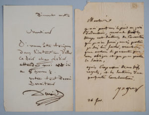 BEAUX-ARTS. ANGERS David d'(1788-1856). L.A.S. (s.l.n.d. « dimanche matin »). 1 p. in-8. Il donne rendez-vous à son correspondant, ils iront chez Charles Nodier ; BRETON Emile (1831-1902) 2 L.A.S. Henin Lietard et Courrière, 22 janvier et 28...