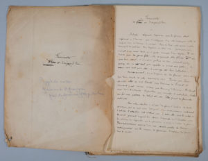 ». L'auteur a biffé « hier, puis autrefois » qu'il a remplacé par « jadis ». Manuscrit du début XXème, avec de nombreux ajouts, ratures, corrections. Dans la première partie il cite les écrivaines ou les inspiratrices Christine de Pisan, Louise Labbé, Mlle Ferrand, Mme de Vaux, Mme Stuart-Mill, Mme de Beaumont, etc., Dans la seconde partie l'auteur s'essaye sur la définition du féminisme dans la société, au plan politique et philosophique.