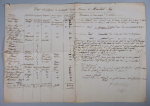 travail, à l'état de brouillon avancé, visant à solliciter des aides financières pour des cousins et cousines du maréchal Ney. Une vingtaine de personnes sont mentionnées, avec leur domicile, degré de parenté, profession et nombre d'enfants, et enfin la somme proposée à accorder. Enfin, dans colonne couvrant la moitié du document figurent les arguments à l'appui de la demande.