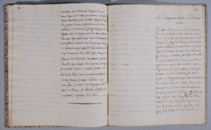 ratures et corrections, sur une colonne occupant la moitié de chaque page. Le texte se pose résolument contre Napoléon Ier, qualifié dès l'introduction de « fléau de Dieu » ; le titre de départ est : « Essay sur le Bonapartisme en général et sur celui des militaires en particulier ». Très probablement inédit, à moins que le texte n'ait fait l'objet d'une publication dans la presse. Quoiqu'il en soit, nous ne trouvons aucune mention d'une pièce similaire dans les collections de manuscrits publiques françaises.