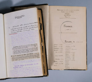 foncé époque, dos à 4 nerfs, titre et tomaison dorés (coins et coupes frottés, un coin cassé). Bibliographie inédite décrivant plus de 2000 livres imprimés du XVIe au XIXe siècle et qui, selon l'introduction, « donne dans un ordre géographique et alphabétique l'indication d'un certain nombre d'ouvrages relatifs au culte de la Sainte Vierge et spécialement de ceux qui traitent des pélerinages ». L'ouvrage renferme quelques notices typographiées collées dans le texte et quelques feuillets volants ajoutés.