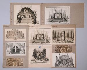 [Gravure]. [Héraldique. Allemagne]. Important ensemble de vignettes gravées montrant des armoiries de familles allemandes, en particulier de membres du Sénat de Nuremberg. XVIIIe siècle. Environ 100 gravures sur cuivre de formats variés, la...