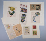 Formes et décors de la Manufacture de 1919 à 1954. Les dessins sont réalisés au crayon sur des feuillets de petite taille, certains sur calque ou carton, la plupart sont rehaussés à la gouache. Chaque pièce se trouve contrecollée sur papier écru fort (montage moderne). Certains thèmes se détachent et forment des ensembles : le style Art Déco, l'iconographie folklorique, en particulier de la Bretagne et des pays scandinaves, le style japonisant, et une série sur le Christ.