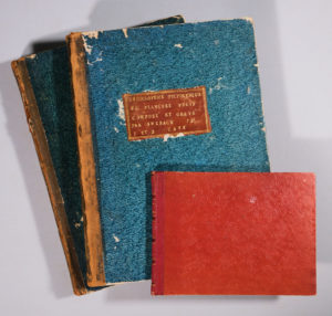 havane sur l'un des plats (dos frottés, un mors et une coiffe de tête usées, très rares saliss. et rousseurs). Réunion de deux volumes disparates réunissant 119 planches gravées à l'eau-forte par J.F.J. Swebach (1769-1823). Toutes ces vues montrent la vie militaire, des cavaliers, scènes de batailles, et des études de chevaux. Le premier volume (avec indication sur la reliure « 1er et 2e cahiers ») renferme deux suites de 30 planches y compris une planche de titre ; tirage sur papier vélin avant la lettre ; les planches du premier cahier, à l'exception du titre, contiennent 2 vignettes chacune. Le second volume renferme deux parties, chacune inclut un titre. Tirage sur papier vélin, avec lettre et numérotation. Ce sont les 5e et 6e cahiers, composé respectivement de 30 pl. (numérotées de 121 à 150 dont le titre), et de 29 planches (numérotées de 151 à 179, une pl. 180 pourrait manquer).
