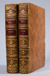 titre et de tomaison rouges, caissons ornés, double filet doré aux coupes, tranches marbrées (frottements ; trou de brûlure aux bords des plats du tome 2).