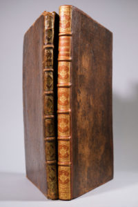 Auboin & F. Clouzier, 1675. [8] f. (dont le frontispice), 152 p., [2] f. (table), fig., veau havane glacé époque, dos à 6 nerfs, titre doré, caissons ornés (coiffes arasées, nerfs et coupes frottés, 2 coins émoussés ; garde sup. manquante ; trav. de vers en marge de la p.39 à la fin ; brunissures, salissures légères, essais de plume p.72, tache pl. XIV). Illustré d'un frontispice, de 24 figures à pleine page, et de 6 vignettes, le tout gravé sur cuivre par De La Boissière. Provenance : François Botet à Phalsbourg (mention manuscrite sur la garde inf. et sur la planche XI). Seconde et troisième parties : A Paris, chez l'auteur & [N. Langlois, masqué par une pièce de papier], 1683. [6] f., 312 p., fr., fig., veau brun époque, dos pastiche fauve, coins et coupes restaurés (accroc à une coupe ; front. et titre un peu défraîchis, brunissures sporadiques, mouillure dans les marges latérales ; il manque la planche double). Un frontispice gravé sur cuivre, et plus de 110 figures dans le texte gravées sur bois ou sur cuivre. Provenance : JB Leroux (signature ancienne en marge du front.).