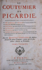 [Coutume. Picardie. 1726]. COUTUMIER (Le) de Picardie, contenant les commentaires de Heu, de Dufresne et de Ricard sur les coutumes d'Amiens ; de Gosset sur celle de Ponthieu ; de Le Caron sur Péronne, Mondidier et Roye ; de La Villette, nouveau...