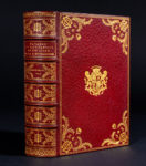 (table, privil.), maroquin rouge, dos à cinq nerfs ornés d'un pointillé doré, titre doré, caissons décorés de guirlandes végétales et d'un monogramme répété, le tout doré, double filet doré bordant les plats, monogramme, fleurons et guirlandes végétales en écoinçons, armes aux centres, double filet doré aux coupes, dentelle intérieure dorée, tranches dorées sur marbrure [Hardy-Mennil] (par endroits court de marges, sans le dernier f. blanc). Seconde édition, revue et augmentée de cet ouvrage de controverse dû au jésuite Fronton Du Duc (1559-1624), helléniste qui enseigna à Bordeaux, puis au Collège de Clermont à Paris, et publia des oeuvres de Pères de l'Église. Très bel exemplaire aux armes et au chiffre de Pierre, comte de Mornay-Soult Dalmatie (1837-1905), petit-fils du maréchal Soult, et apparenté à la famille Du Plessis-Mornay par son père (OHR 705 et 706). Autre provenance : petit monogramme GV couronné estampillé au titre.