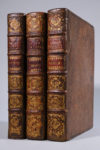 instructions pour servir à leur histoire et un journal historique des siéges, batailles... où ces corps se sont trouvés. A Liege, chez E. Kints, 1734. 3 volumes in-4, veau havane époque, dos à5 nerfs, pièces de titre et de tomaisons maroquin grenat, roulette dorée aux coupes, tranches jaspées (des défauts restaurés, une fente partielle d'un mors ; mouill. en début de vol. puis marginale en fin au tome 3 ; sans le frontipsice). ILLUSTRATION complète.