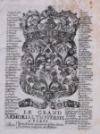 nombre de planches en taille-douce. Reveu, corrigé & augmenté d'un discours fort ample, pour trouver & expliquer le nom de chaque famille. A Paris, chez E. Loyson, 1662. In-folio, [1] f. (titre), sig. A4, D-M4, [1] f. (dédicace gravée), pl., fr., veau havane époque, dos à 5 nerfs, titre doré, caissons orné (frott., mors sup. et coiffes découverts, lacunes de couvrure au dos ; mouillure soutenue sur tuit le volume ; p.125 déch. sans manque ; il manque une pl. dépl. et peut-être une pl. bis). Nouvelle édition de l'ouvrage de Segoing donnée par Cl. Le Cellier, partagée entre les libraires Pierre Bessin et Etienne Loyson. Illustrée d'un frontispice, d'une pl. de dédicace à Mathieu Molé, et de 189 planches (numérotées de 1 à 184 plus 5 pl. bis) gravés sur cuivre ; la fin du volume renferme : « Les noms, surnoms et armes de nosseigneurs du grand conseil du Roy », 9 planches (num. A-C, 1-3 et 1-3) ; et enfin une planche intitulée « L'Empire de la mort » gravée par Nolin d'après Henry Cheneau. Provenance : d'Houdemare (ex-libris armorié gravé XIXe s.).