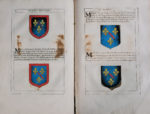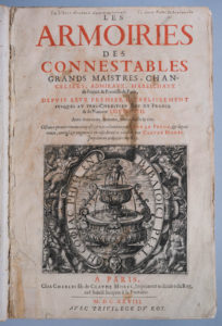LE FERON (Jean) ; MOREL (Claude). Les armoiries des connestables, grands maistres, chanceliers, admiraux, mareschaux de France & prévosts de Paris... A Paris, chez Charles fils de Claude Morel, 1628. 6 parties en un volume in-folio, pagin. multiple,...